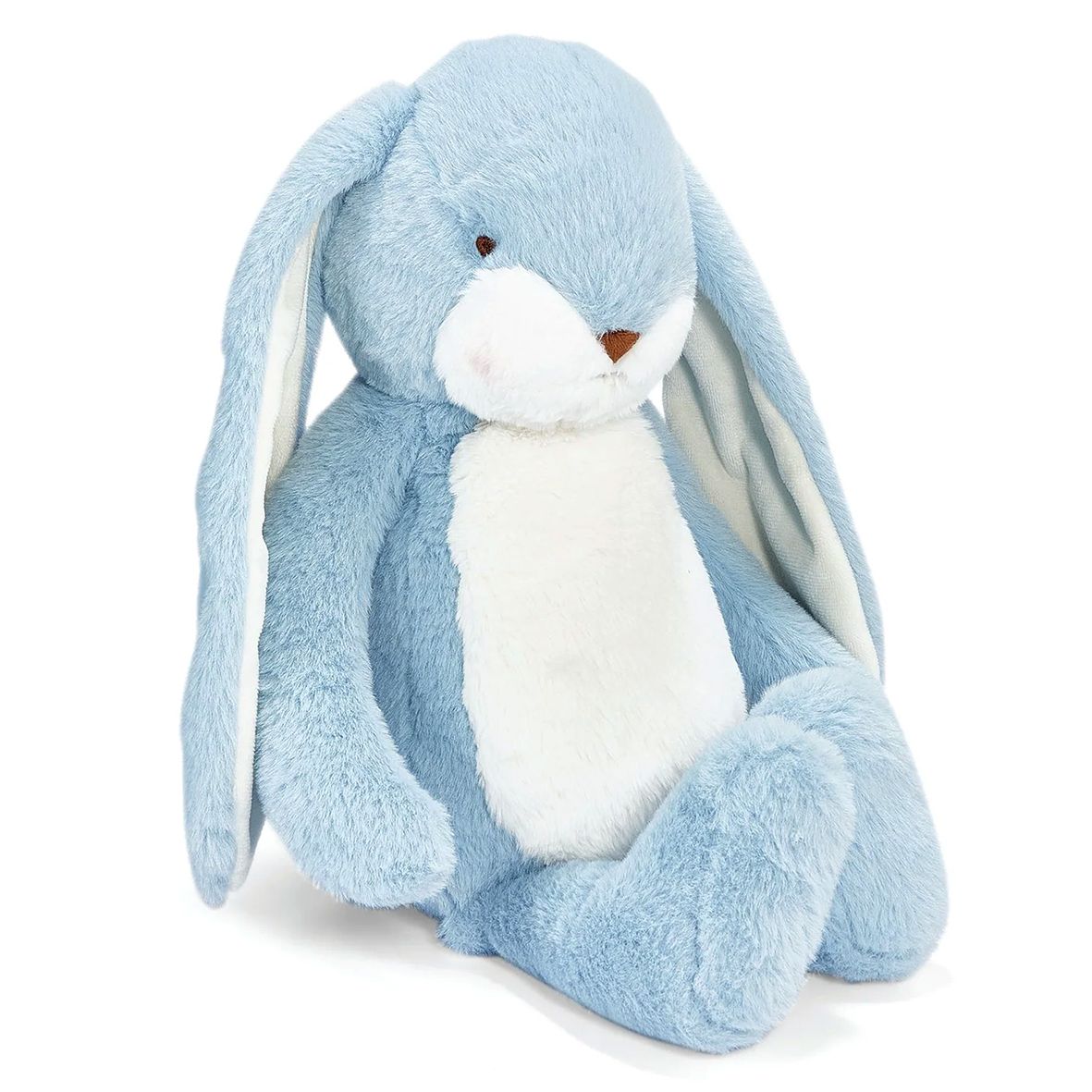 Sweet Floppy Nibble Bunny is sweet, tender and oh-my-gosh unbelievably soft, and now floppier than ever. This stuffed animal has a hand-embroidered face, pink cheeks, and big fluffy tail. Features luxurious maui blue and warm white fur, with velour-lined ears perfect for personalizing. This plush bunny will become your best friend indeed.